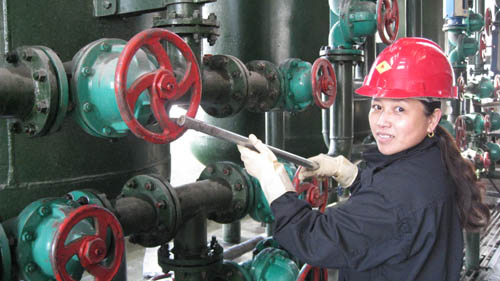 圖為北大荒米業(yè)二九O米廠水質(zhì)化驗班長王培英正在對新建的3兆瓦生物質(zhì)能熱電設(shè)備進行檢修