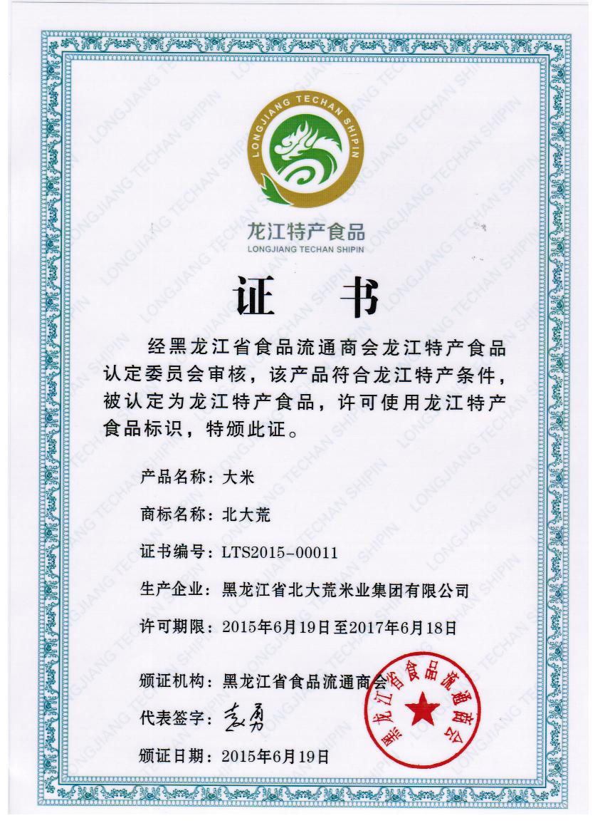 北大荒米業(yè)榮獲首批龍江特產(chǎn)食品專用標(biāo)識黑龍江省食品流通商會龍江特產(chǎn)食品認(rèn)定工作會議在和平邨賓館舉行。黑龍江北大荒米業(yè)集團(tuán)有限公司大米系列產(chǎn)品被認(rèn)定為首批“龍江特產(chǎn)食品”,并獲得了“龍江特產(chǎn)食品”專用標(biāo)識的許可使用證書。對獲得龍江特產(chǎn)食品認(rèn)定的企業(yè)頒發(fā)標(biāo)識牌和龍江特產(chǎn)食品專用標(biāo)識許可使用證書(有效期二年),并報(bào)省商務(wù)廳備案。 為加快落實(shí)省領(lǐng)導(dǎo)“轉(zhuǎn)變經(jīng)濟(jì)發(fā)展方式,依托優(yōu)勢資源發(fā)展特色經(jīng)濟(jì)”的指示精神,更好地保護(hù)黑龍江省特產(chǎn)食品品牌,推廣龍江特產(chǎn)食品品牌形象,提高我省特產(chǎn)食品的市場占有率和競爭力,推動(dòng)龍江特產(chǎn)食品企業(yè)創(chuàng)新發(fā)展,黑龍江省食品流通商會根據(jù)黑龍江省商務(wù)廳的工作指導(dǎo)意見,在全省范圍內(nèi)開展了龍江特產(chǎn)食品認(rèn)定工作。 獲得“龍江特產(chǎn)食品”的企業(yè)或品牌按《“龍江特產(chǎn)食品”標(biāo)識使用規(guī)定》可以在相應(yīng)產(chǎn)品或包裝、裝潢、說明書、廣告宣傳及互聯(lián)網(wǎng)等媒介中使用專用的“龍江特產(chǎn)食品”標(biāo)識。 “龍江特產(chǎn)食品”標(biāo)識已在國家商標(biāo)局注冊。屬黑龍江食品流通商會所有,現(xiàn)授權(quán)給我公司使用。分子公司,制米廠如有需要,請聯(lián)系研發(fā)部進(jìn)行辦理。