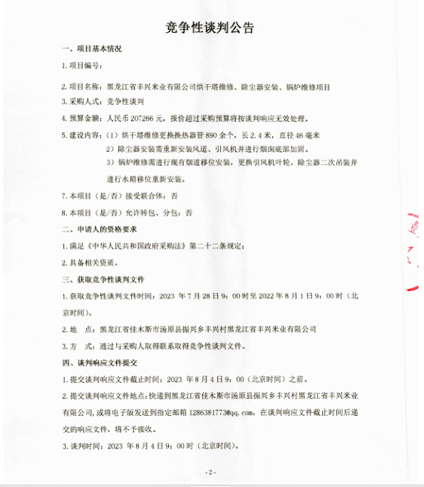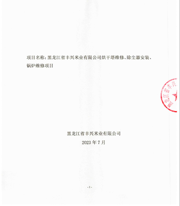 黑龍江省豐興米業(yè)有限公司烘干塔維修、除塵器安裝、鍋爐維修項(xiàng)目招標(biāo)公告