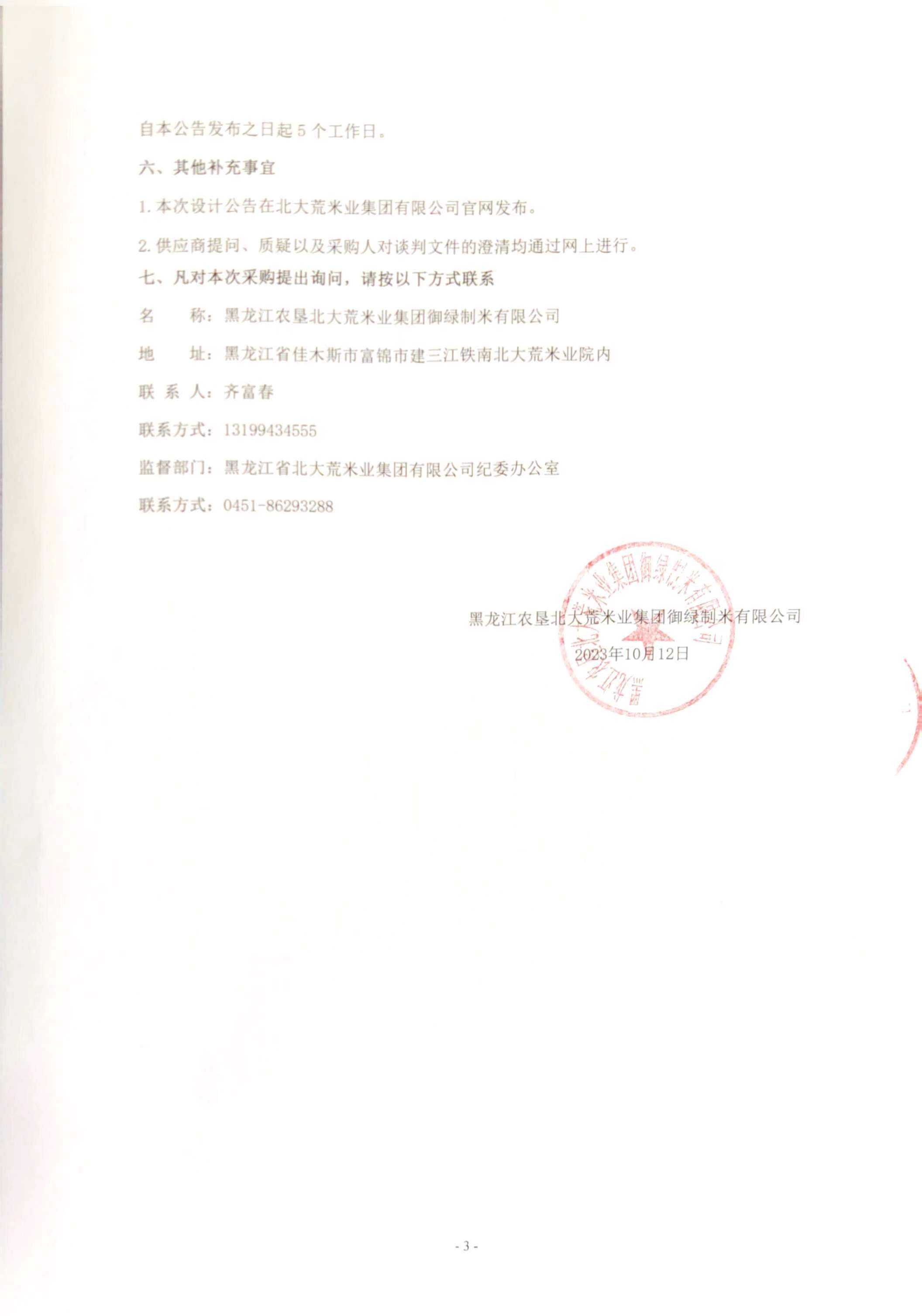 黑龍江農(nóng)墾北大荒集團(tuán)御綠制米有限公司三十萬噸糠集庫地面改造項(xiàng)目競爭性談判公告