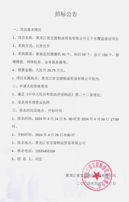 黑龍江省寶盟糧油公司五個全覆蓋建設(shè)項目招標(biāo)公告