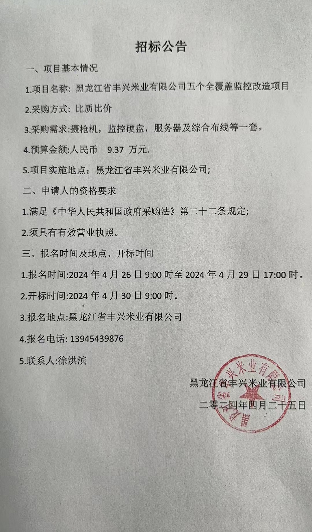 黑龍江省豐興公司五個全覆蓋監(jiān)控改造項目招標(biāo)公告