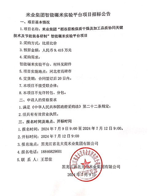 智能碾米實(shí)驗(yàn)平臺(tái)項(xiàng)目招標(biāo)公告