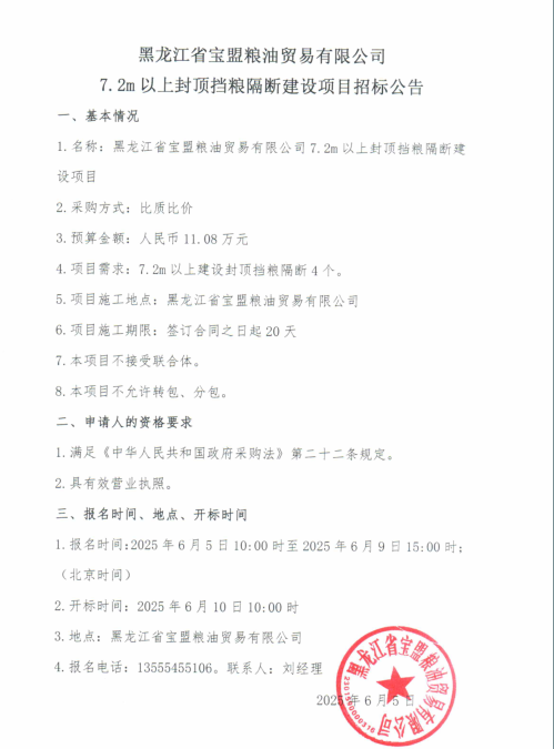 寶盟公司擋糧隔斷建設(shè)項目招標(biāo)公告